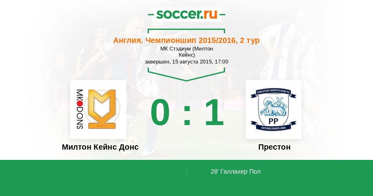 28' (0:1) Галлахер Пол (12) (Гарнер Джо (14))