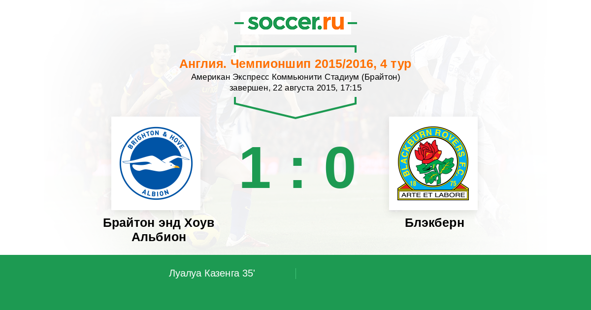 35' (1:0) Луалуа Казенга (30) (Бэлдок Сэм (9))