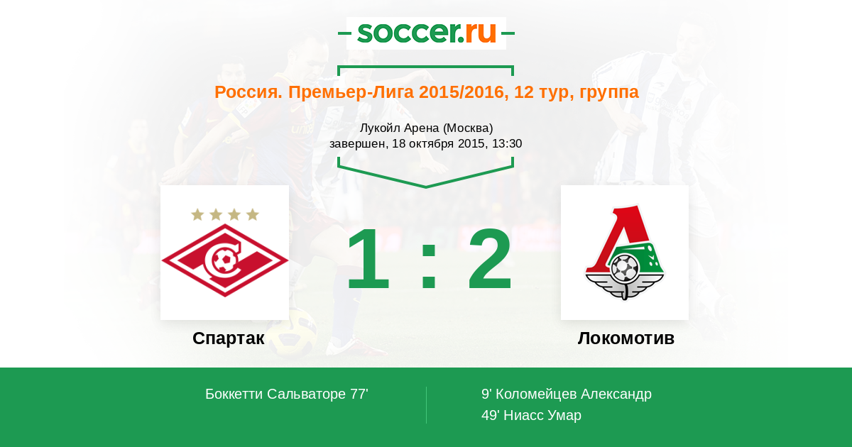 Локо с победой . А любимый Спартак , по моему уже прикатил . Жаль . 21 век Спартаку пока не фартит .
