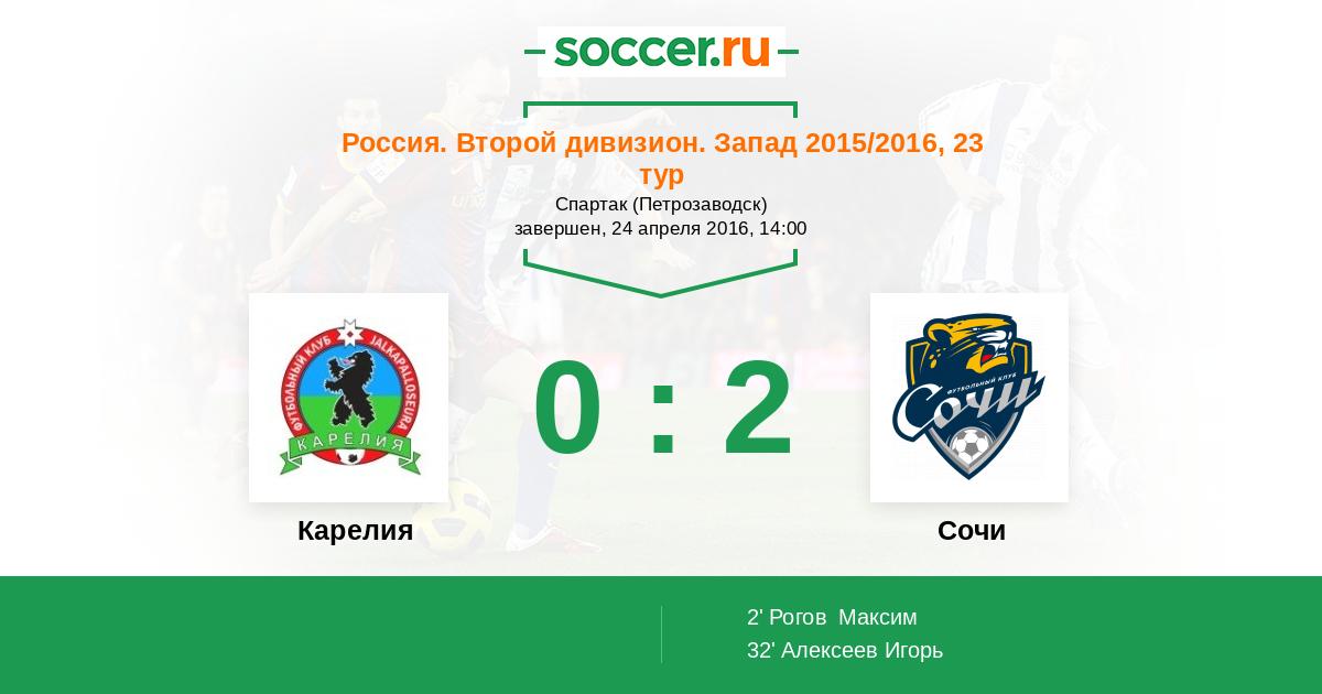 Матчи Россия. Второй дивизион. Запад 2015/2016