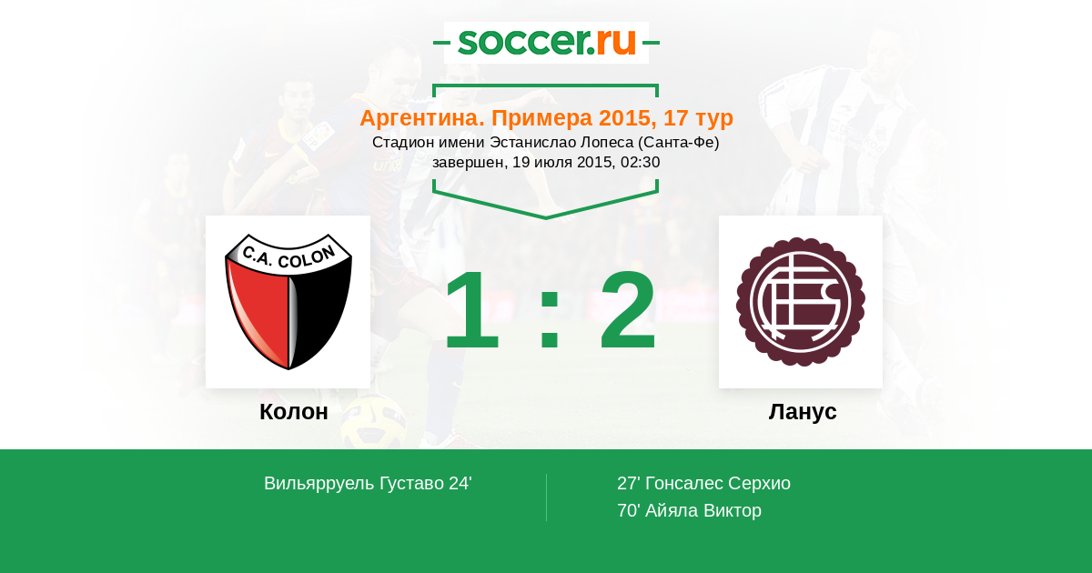 24' (1:0) Вильярруель Густаво (7) (Вегетти Пабло (20))
