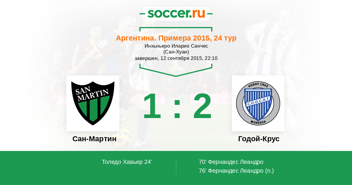 24' (1:0) Толедо Хавьер (24) (Фигероа Маркос (19))