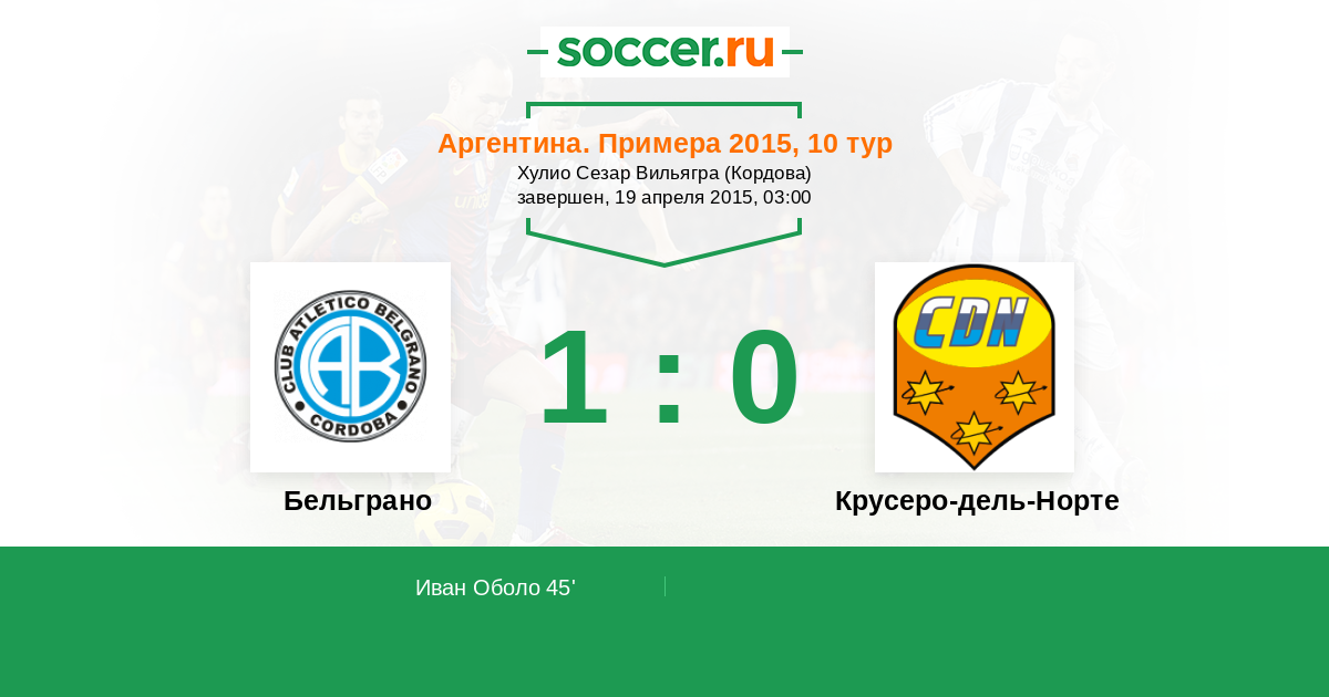 Гол45' (1:0) Иван Оболо (20) (Ригони Эмилиано (24))