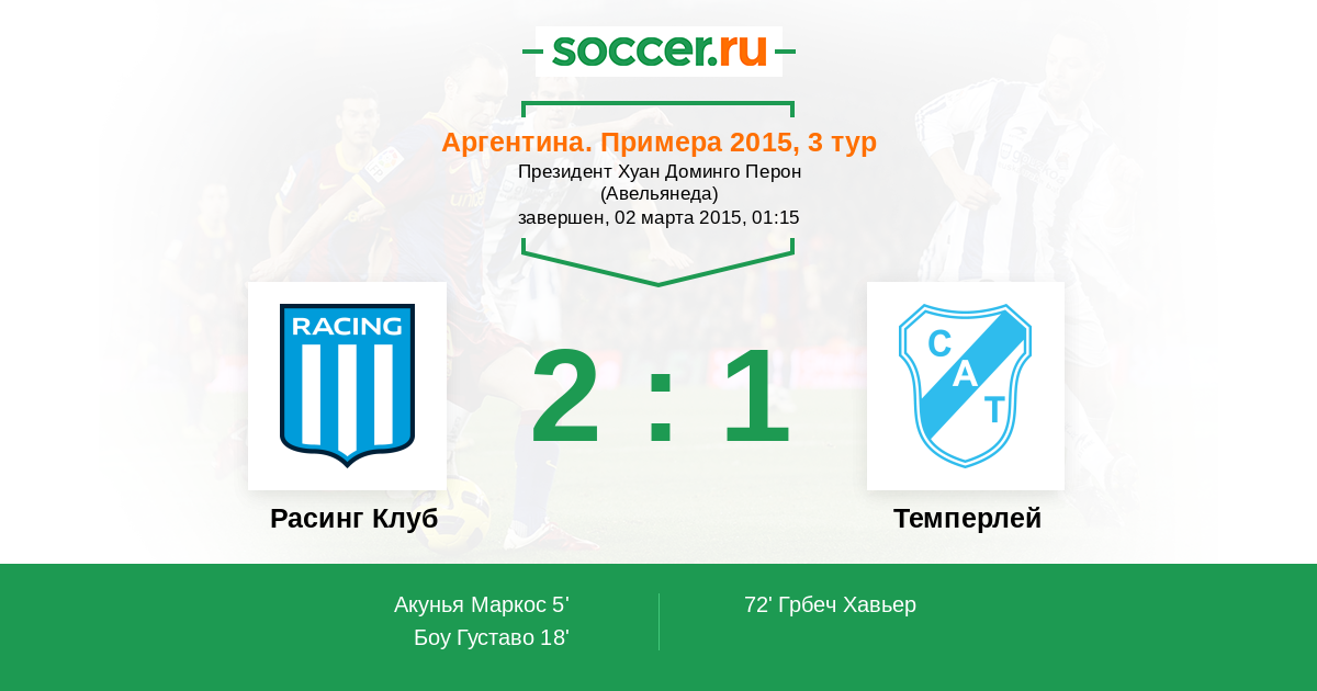 5' (1:0) Акунья Маркос (17) (Камачо Вашингтон (8))