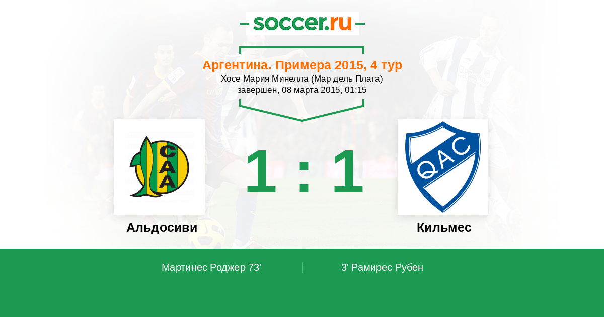 73' (1:1) Мартинес Роджер (14) (Лигюерсио Пол (7))