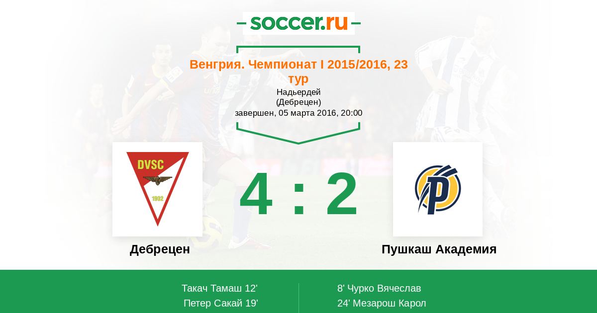 59' Варга Йожеф (33) уходит с поля, Пал Лазар (13) вышел на поле