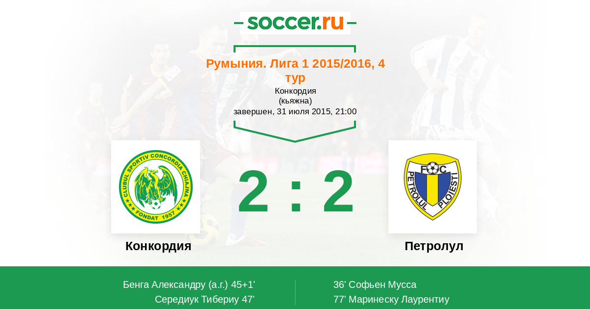 45+1' (1:1) Автогол Бенга Александру (16)