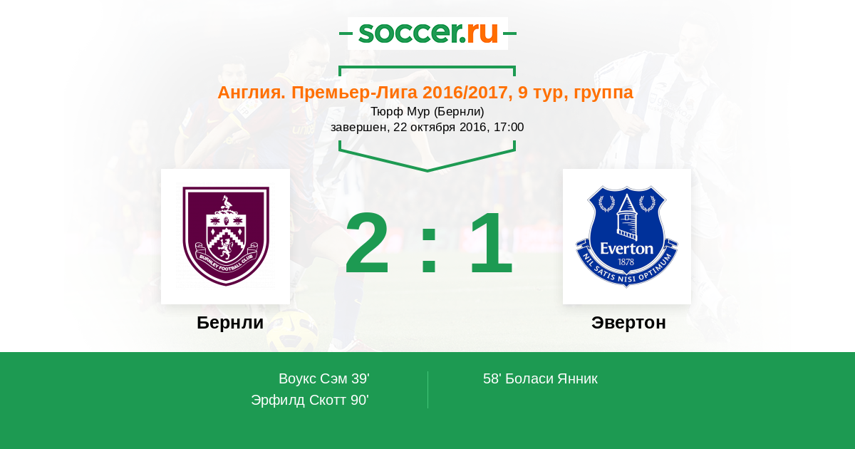 Скотт Эрфилд (Бёрнли) получает мяч на отскоке прямо у линии штрафной. Он долго не думает и наносит удар в нижний угол ворот. Мартен Стекеленбург никак не мог спасти, счет меняется на 2:1.
