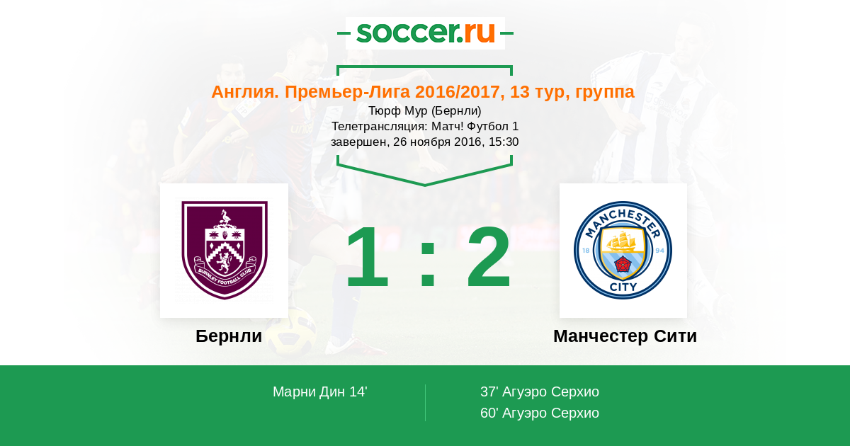 Добрый день, уважаемые любители английского футбола! Тринадцатый тур английской Премьер-лиги стартует с противостояния «Бернли» и «Манчестер Сити». Игра будет проходить на стадионе «Тюрф Мур» и начнётся в 15:30 по московскому времени. Команды находятся в разных частях турнирной таблицы, но это английский футбол, а значит, что здесь может произойти всё что угодно. «Соккер.Ру» проведёт текстовую онлайн-трансляцию данного матча, а держать Вас в курсе событий буду я, Глеб Васильев.