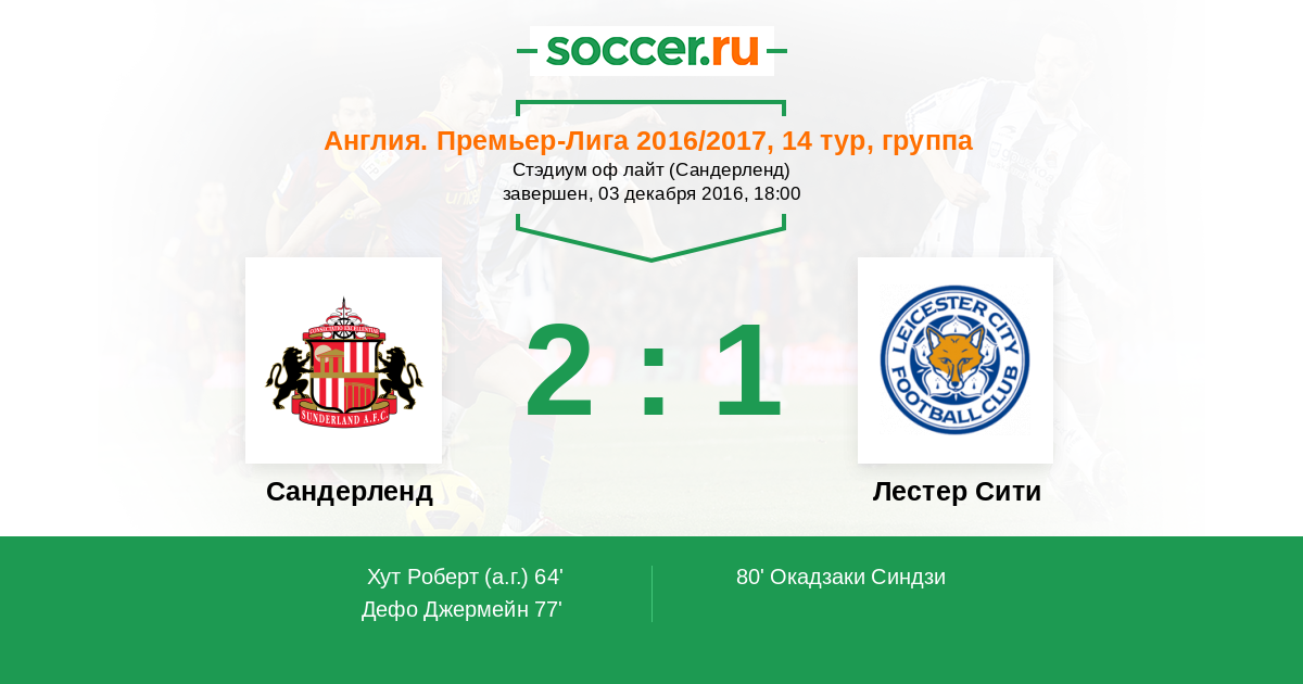 ГОЛ - 2:1! Отличную передачу, которая стала голевой, сделал Демарай Грей, Синдзи Окадзаки (Лестер Сити) с близкой дистанции расстрелял голкипера, отправив мяч в нижний угол ворот.