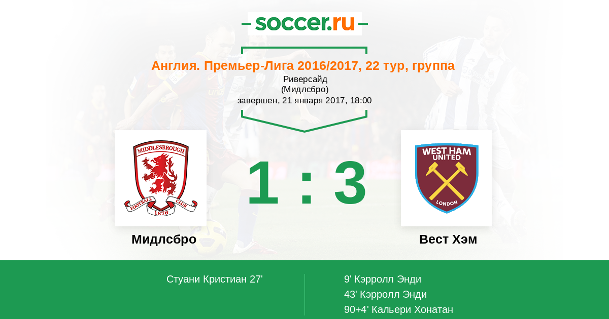 0:1 - с таким счетом команда Мидлсбро чаще всего завершала свои игры (4 раз).
