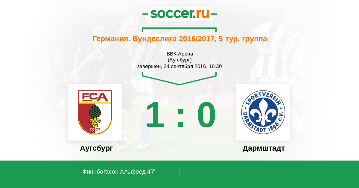 Грубый отбор продемонстрировал Джером Гондорф (Дармштадт 98). Рефери назначил штрафной. Аугсбург получает право на стандарт.