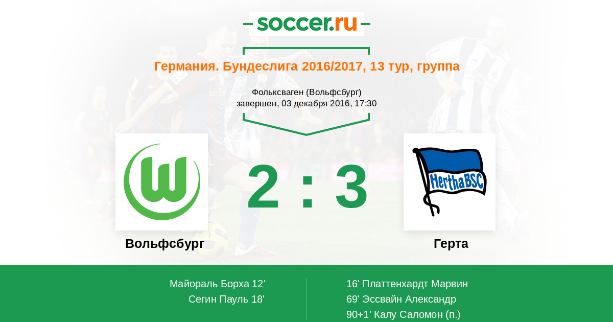 Марвин Платтенхардт (Герта Берлин) создает себе хороший шанс для взятия ворот, но чуть-чуть не попал он в ворота - сантиметры мимо штанги. Мяч покинул пределы поля. Вольфсбург введет мяч в игру ударом от ворот.
