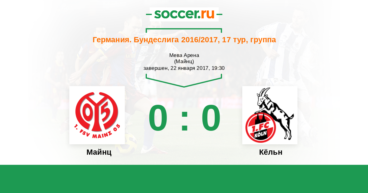 Левин Озтунали (Майнц-05) получает мяч в штрафной и тут же бьет первым касанием. В паре сантиметров над перекладиной пролетел мяч. Мяч покинул пределы поля. Кёльн введет мяч в игру ударом от ворот.