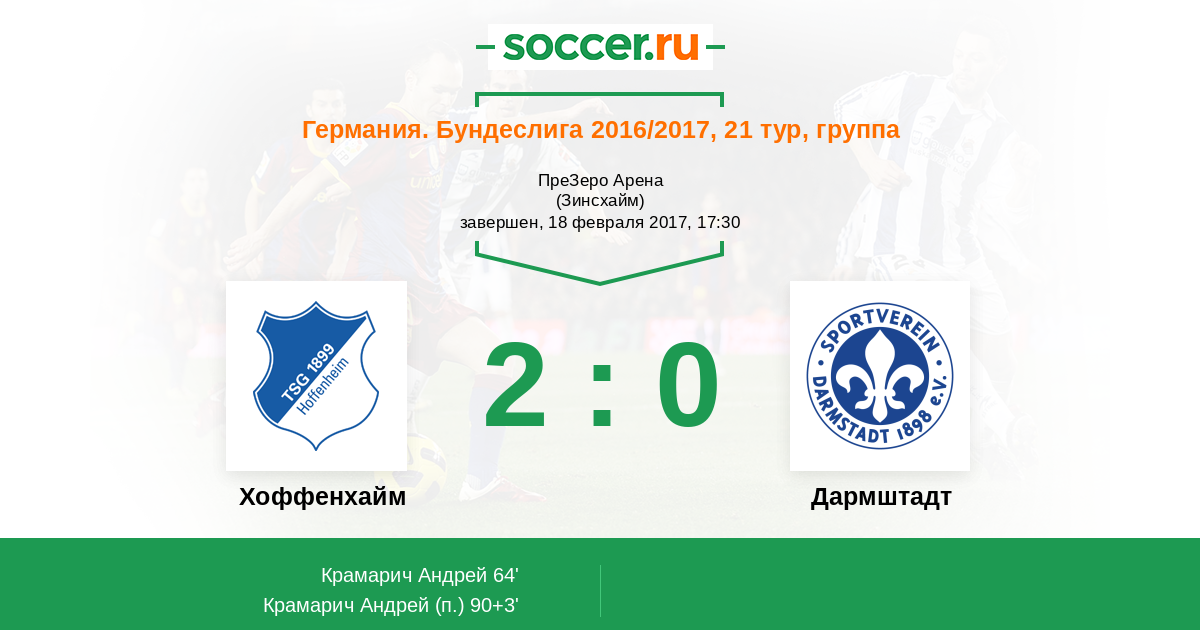 Желтую карточку за подкат получил Себастьян Руды (Хоффенхайм). Феликс Брых не колеблясь принял это решение.
