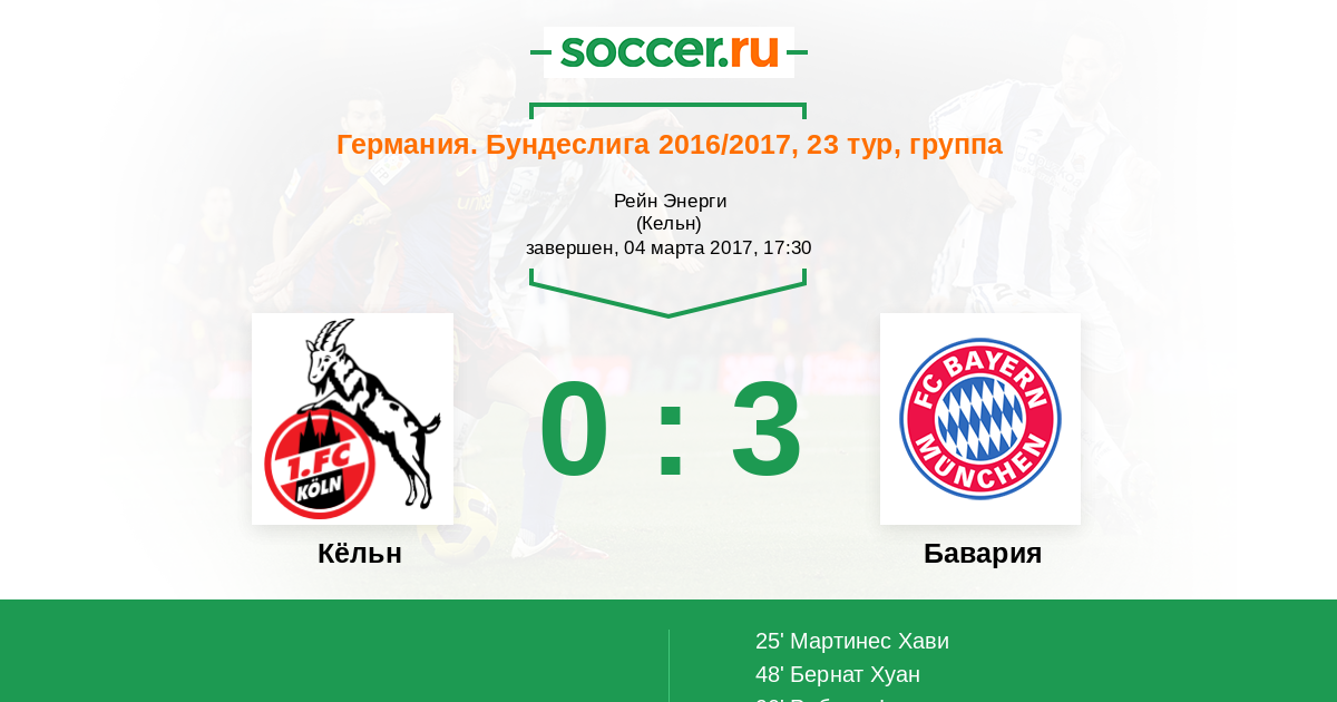 Томас Мюллер (Бавария Мюнхен) аккуратный заброс в штрафную делает, но Роберт Левандовски не смог добраться до мяча. Мяч покинул пределы поля. Кёльн введет мяч в игру ударом от ворот.