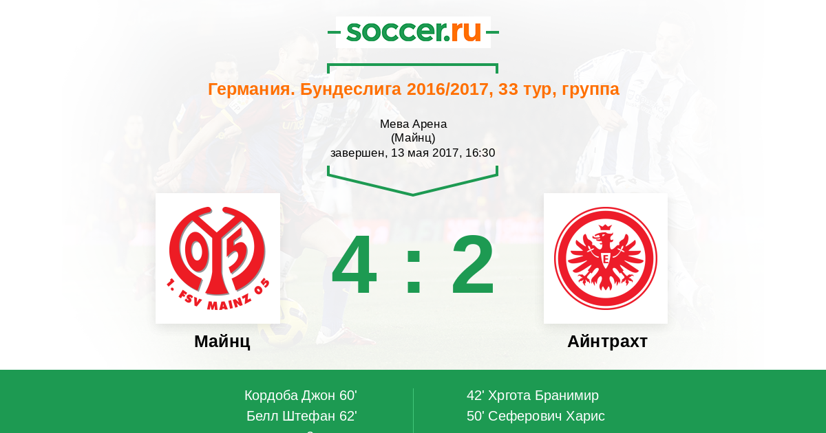 Подача со штрафного. Штефан Белль (Майнц-05) уверенно играет головой в штрафной, он поразил правый угол ворот своим точным ударом.