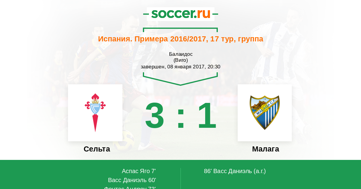 Грубый отбор продемонстрировал Игнасио Камачо (Малага). Рефери назначил штрафной. Сельта получает право на штрафной с опасной точки.