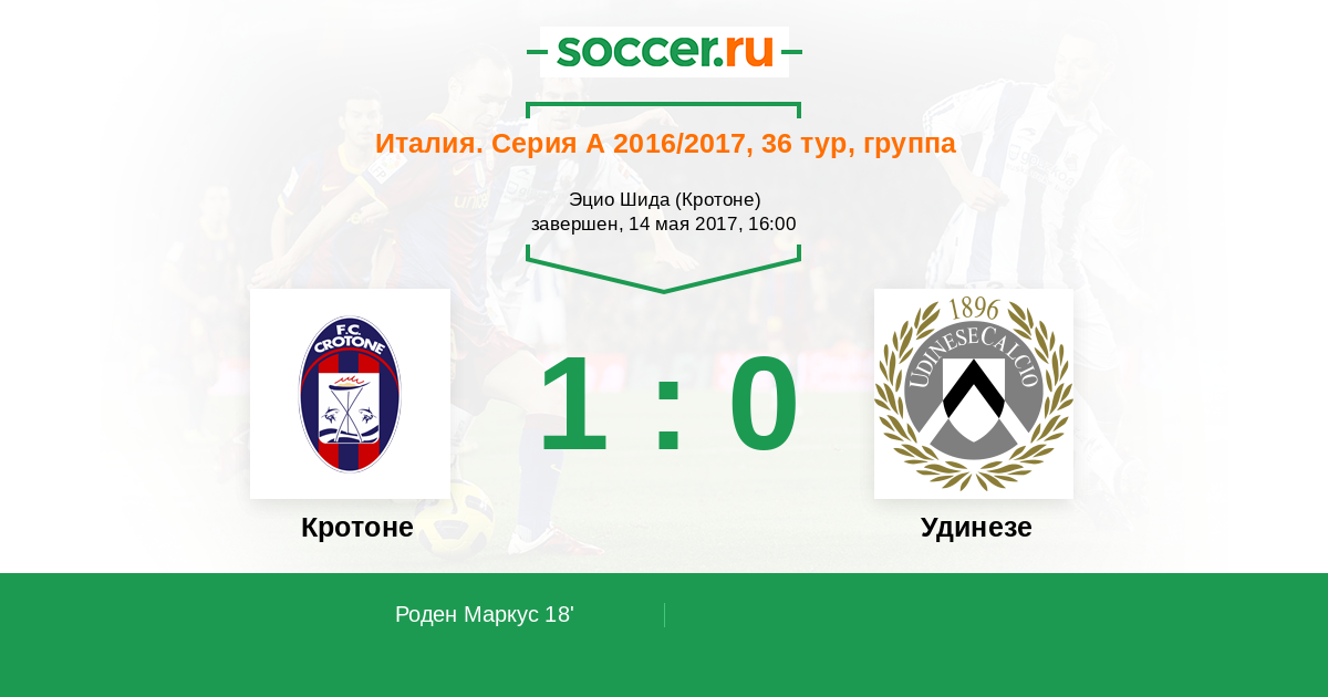 Симоне Скуффет замечательно сыграл на выходе после того, как Андреа Nalini (Кротон) исполнил навес с корнера. Кротоне получает право на угловой удар.