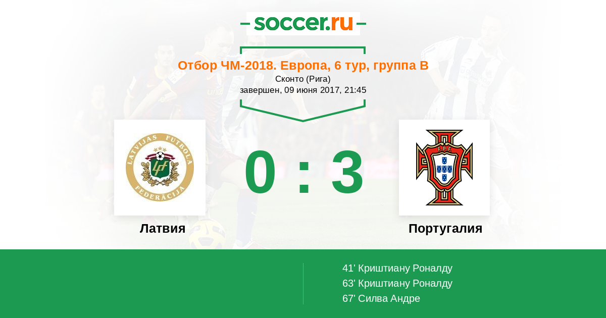 ГОЛ - 0:3! Криштиану Роналду сделал голевую передачу, Андре Силва (Португалия) замкнул эту передачу в нижний угол ворот, а Andris Vanins получил баранку.