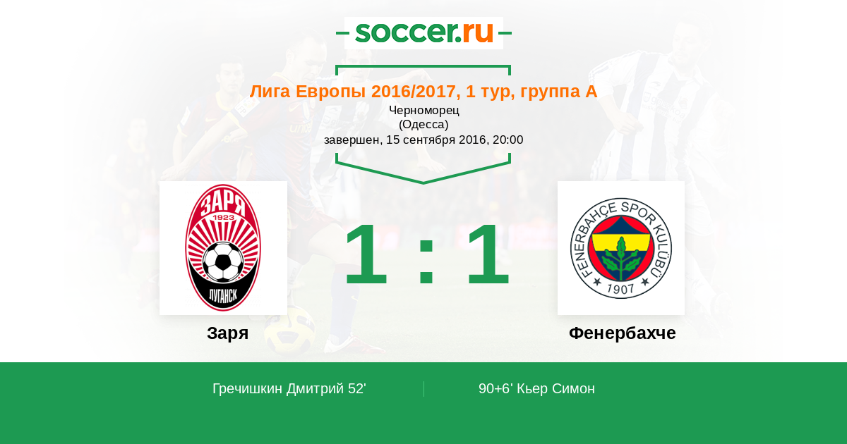 Эдуард Соболь (Заря) грубо сыграл, и Istvan Kovacs свистнул фол. Штрафной удар с фланга получает Фенербахче.