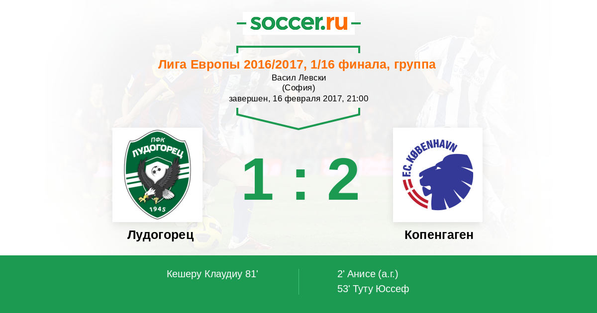 Жонатан Кафу (Людогорец) промахнулся из пределов вратарской. Мяч пролетел мимо ворот после его удара. Даже моя бабушка забила бы из этой ситуации. Мяч покинул пределы поля. Копенгаген введет мяч в игру ударом от ворот.