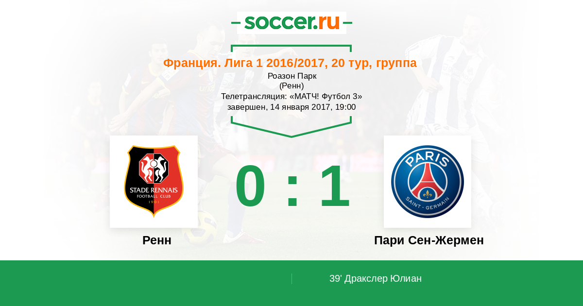 Доброго времени суток, уважаемые любители футбола! Сегодня в рамках двадцатого тура французской Лиги 1 в гости к "Ренну" пожалует "ПСЖ". Встреча первого круга между этими командами завершилась безоговорочной победой дружины Унаи Эмери, "красно-синие" отправили в ворота соперника четыре безответных мяча. На данный момент отставание подопечных Кристиана Гуркюффа от идущего на третьем месте "ПСЖ" в турнирной таблице составляет одиннадцать очков, но навряд ли "Ренн" будет претендовать на место в первой тройке, но вот побороться "красно-черным" за четвертую строчку вполне по силам. Так что сегодня парижанам надеяться на легкую победу точно не стоит. Вместе с Вами следить за событиями этого увлекательного матча на soccer.ru будет Дмитрий Отмахов.