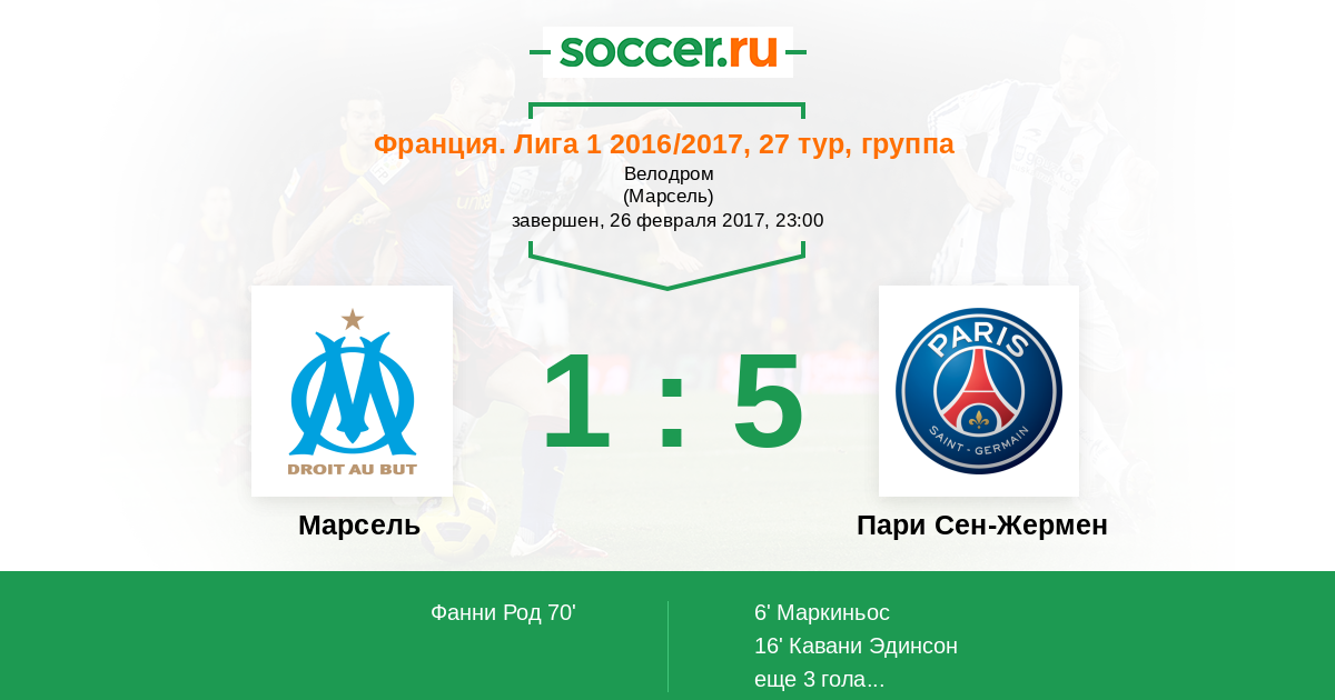 Гол! Блез Матюиди (ПСЖ) воспользовался своим шансом. Он в касание пробил из-за пределов штрафной и точно попал под перекладину. Счет 1:5.