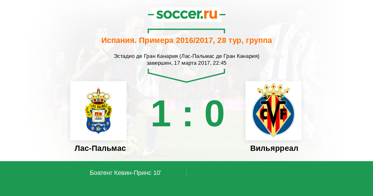 ГОЛ! Кевин-Принс Боатенг (Лас-Пальмас) наносит отличный удар головой после не менее отличного навеса. Ни одного шанса для вратаря спасти команду.