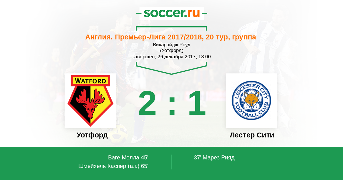 Ричарлисон (Уотфорд) получил пас (автором был Андре Каррильо) и попробовал пробить с угла штрафной. Но мяч прошел мимо ворот. Мяч ушел за линию ворот, и вратарь команды Лестер произведет удар от ворот.