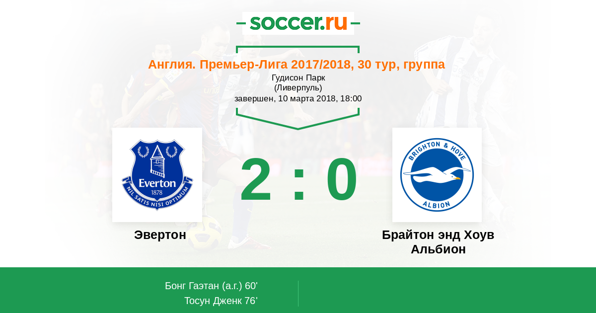 Несчастный автогол забил Гаэтан Бонг (Брайтон), который пытался выбить мяч подальше, но вместо этого отправил его в сетку собственных ворот.