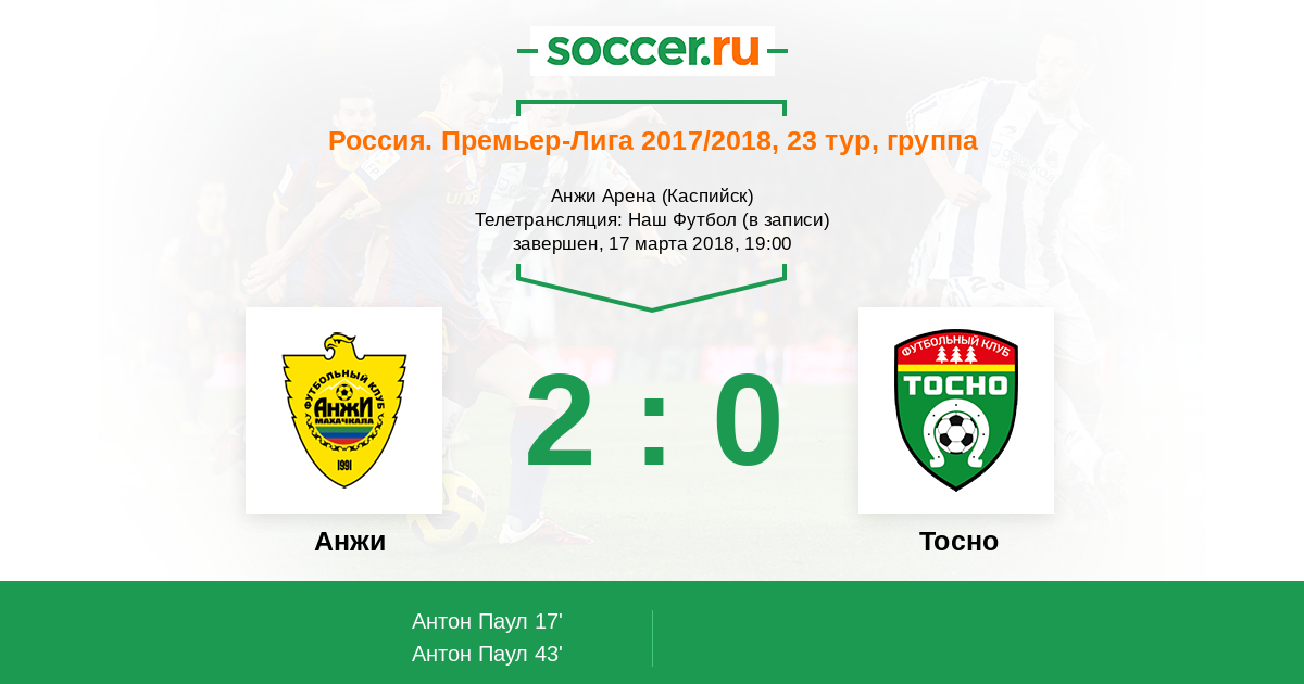 "Анжи" уверенно действовал во втором тайме и довел игру до победного. "Желто-зеленые" заработали три очка, что позволило им обогнать "Тосно" в турнирной таблице, поднявшись на 13-ое место. В следующем туре махачкалинцам предстоит выезд в Краснодар, а команда Дмитрия Парфенова отправится в гости к "Спартаку". Текстовую онлайн-трансляцию провел Глеб Васильев. До новых встреч, друзья!