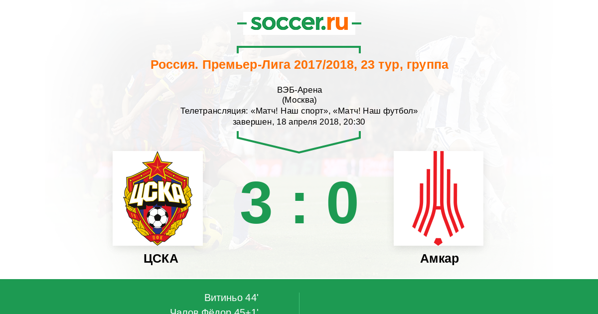 ЦСКА второй раз в этом сезоне в рамках РФПЛ обыгрывает "Амкар" и выходит на чистое третье место в таблице, обогнав "Краснодар" и "Зенит". Пермяки остаются на 13-ой строчке, им предстоит серьезная борьба за сохранение прописки в высшем дивизионе страны. Спасибо за внимание! Следите за футболом на "Соккер.ру"!