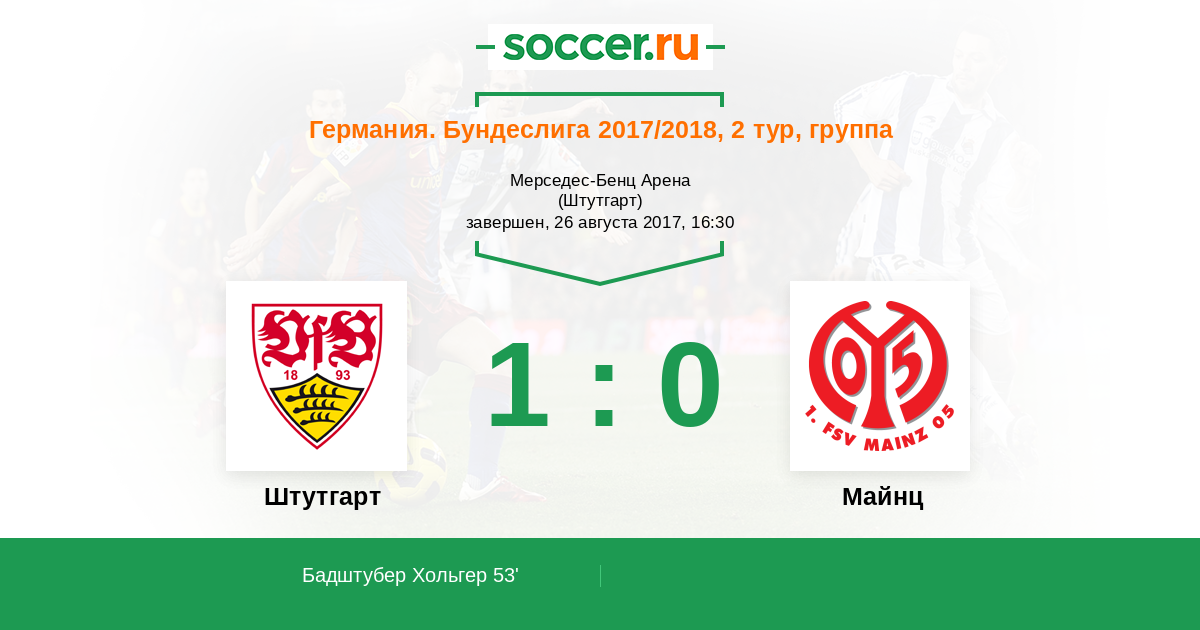 Орел Мангаля (Штутгарт) избавился от игрока обороны, который опекал его и нанес неточный удар по воротам. Вратарь мог быть спокоен - мяч ближе к верхнему ряду трибун полетел. Мяч ушел за линию ворот, и вратарь команды Майнц произведет удар от ворот.