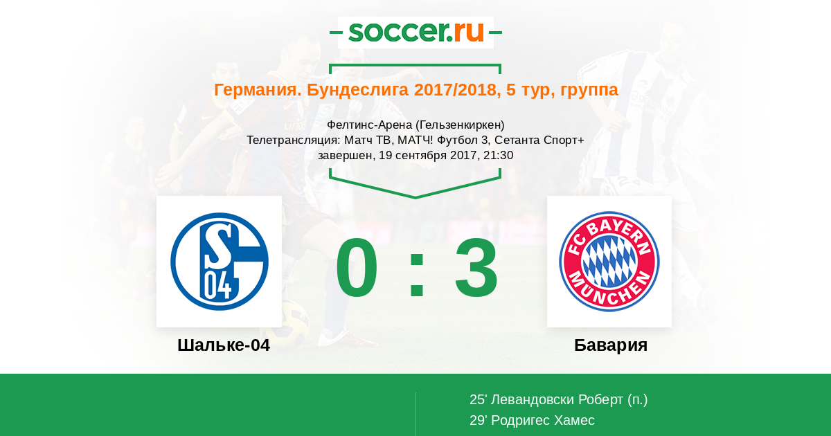 "Бавария" не оставила шансов "Шальке", отправив в сетку ворот соперника три мяча. Мюнхенцы поднимаются на привычную для себя первую строчку и теперь ждут результатов матчей своих конкурентов. Одним из героев сегодняшней встречи стал Хамес Родригес, который в своей первой игре в старте отметился голом и голевой передачей. Не забудьте выбрать лучших игроков в составах обеих команд. Текстовую онлайн-трансляцию провел Глеб Васильев. Продолжайте следить за немецким футболом на Soccer.Ru!