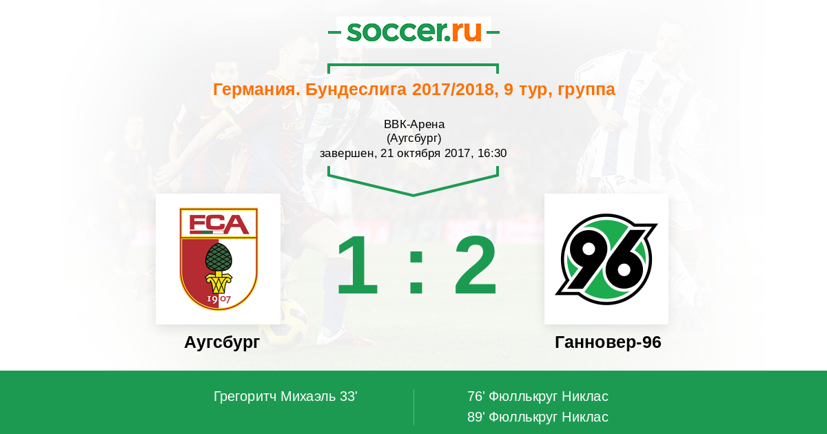 Михаэль Грегорич (Аусбург) принял мяч на краю штрафной и нанес голевой удар - Филипп Чаунер был бессилен. Счет 1:0.