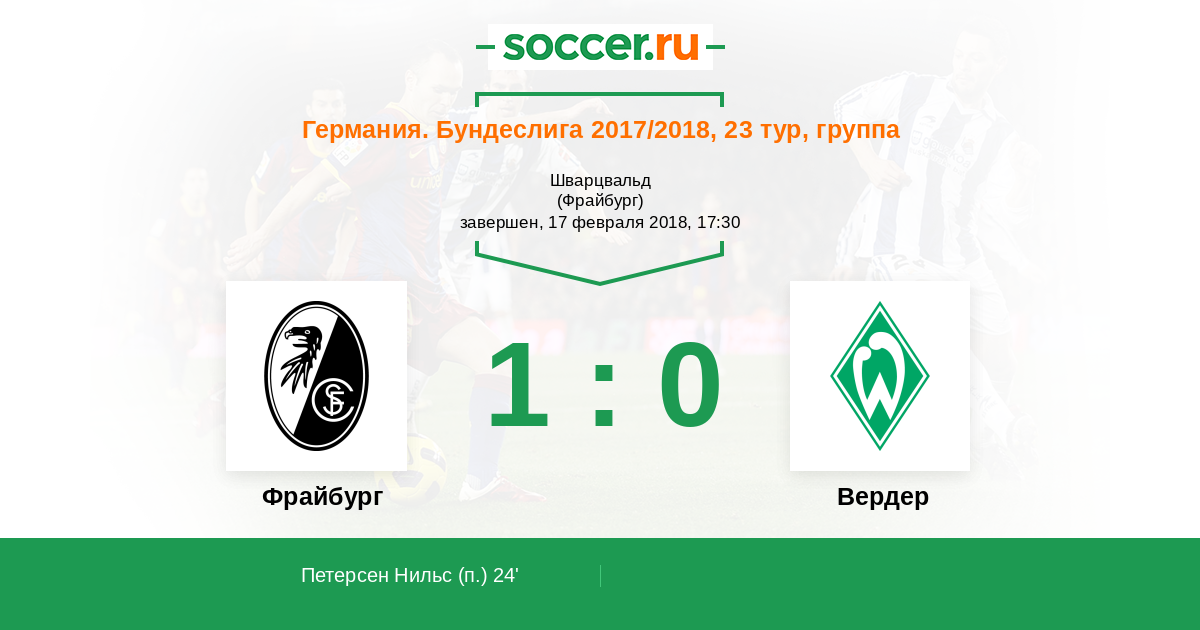 Людвиг Аугустинссон (Вердер Бремен) уронил соперника. Если Robert Hartmann еще раз увидит такое нарушение, то, скорее всего, покажет карточку. Фрайбург получает право на штрафной удар.