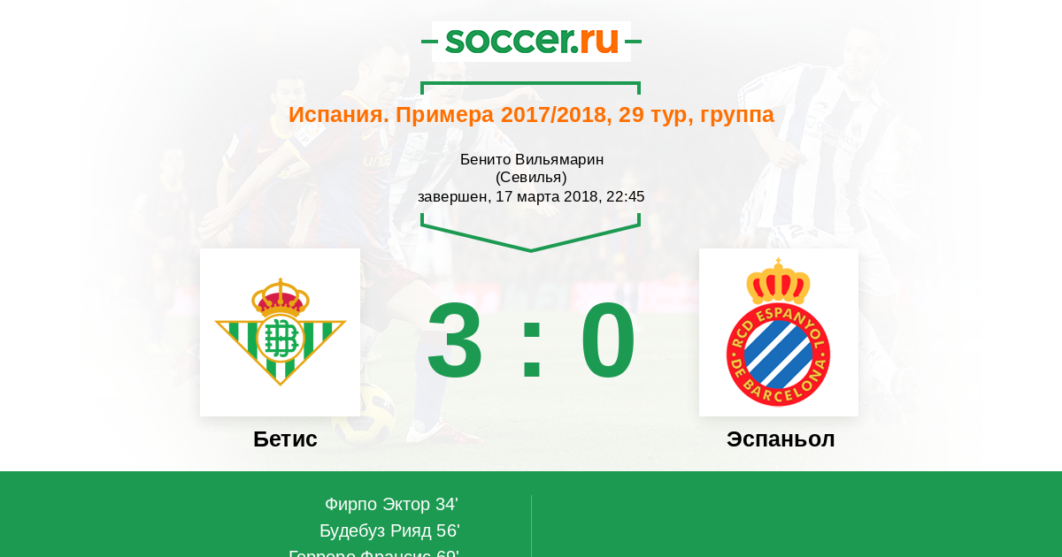 После великолепного навеса Фирпо Хуниор (Бетис) точно пробил головой по воротам в "девятку". Отличный момент!