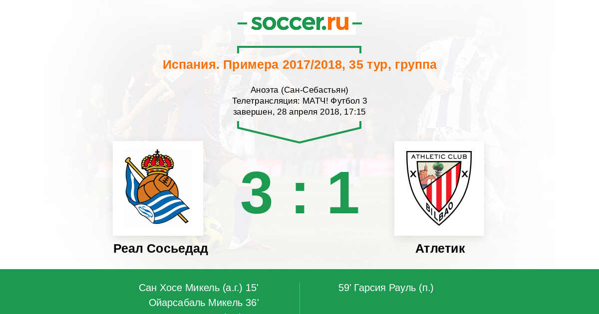 Обидно свои ворота поразил Микел Сан Хосе (Атлетик). Он хотел прервать прострел, но получился автогол.