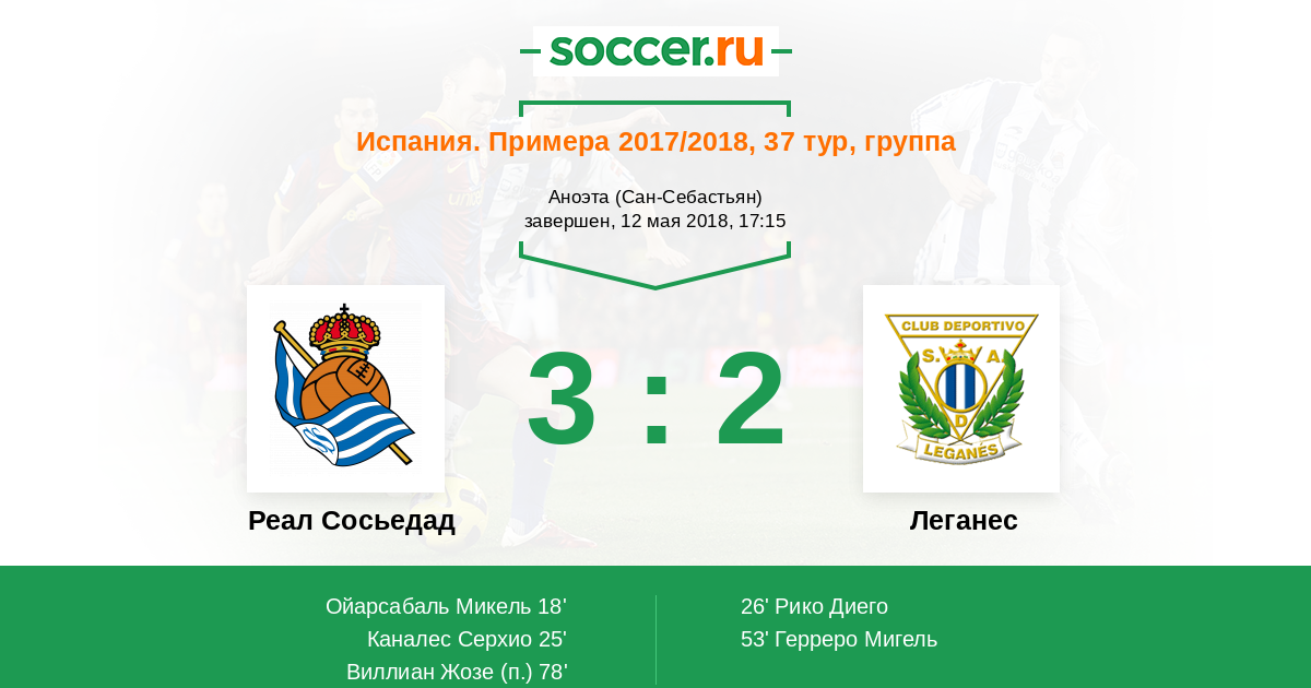 Серхио Каналес (Реал Сосьедад) получает великолепную передачу и оказывается один перед голкипером. Хладнокровно переигрывает его, отправляя мяч в сетку.
