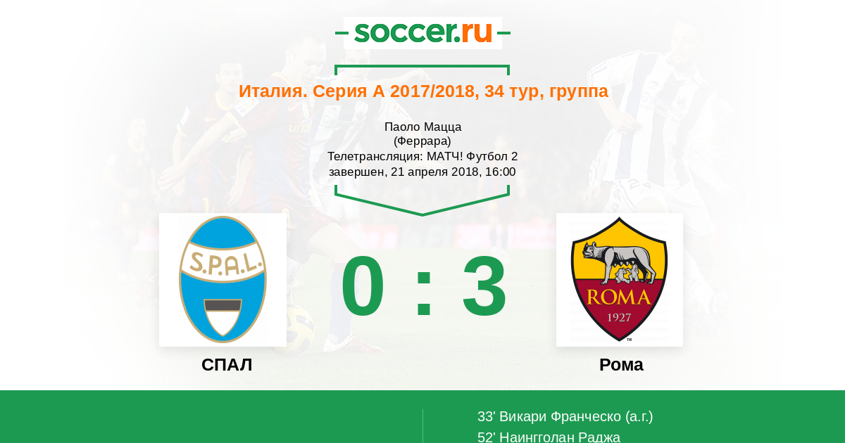 Не это хотел сделать Франческо Vicari (СПАЛ). Он пытался прервать пас, но отправил мяч в собственные ворота 0:1.