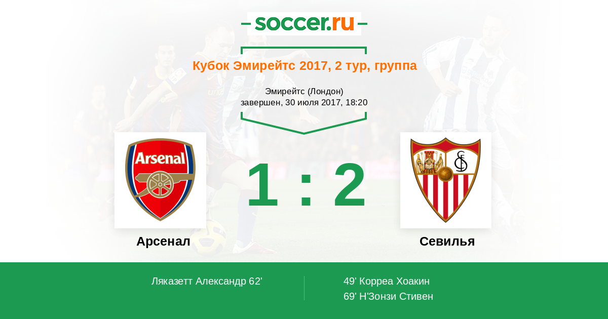 Приветствуем всех любителей европейского футбола! На связи Лондон, где сегодня состоятся игры второго тура Emirates Cup. Данный турнир организуется «Арсеналом» и проводится с 2007 года. Формат соревнования предусматривает двухдневный розыгрыш, во время которого каждый участник турнира играет два матча. В этом году на Кубок Эмирейтс были приглашены «Севилья», «Бенфика» и «РБ Лейпциг». Интересна и система очков, помимо традиционных трёх баллов за победу команды получают бонусные очки за количество забитых голов. Нам же предстоит наблюдать за противостоянием «Арсенала» и «Севильи». Текстовую онлайн-трансляцию проведёт Глеб Васильев.
