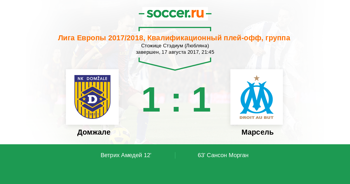 ГОЛ! Отличный голевой пас отдал Ivan Firer. Amedej Vetrih (Домжале), получив мяч, нанес четкий удар в нижний угол ворот. Стив Манданда не спас. 1:0.