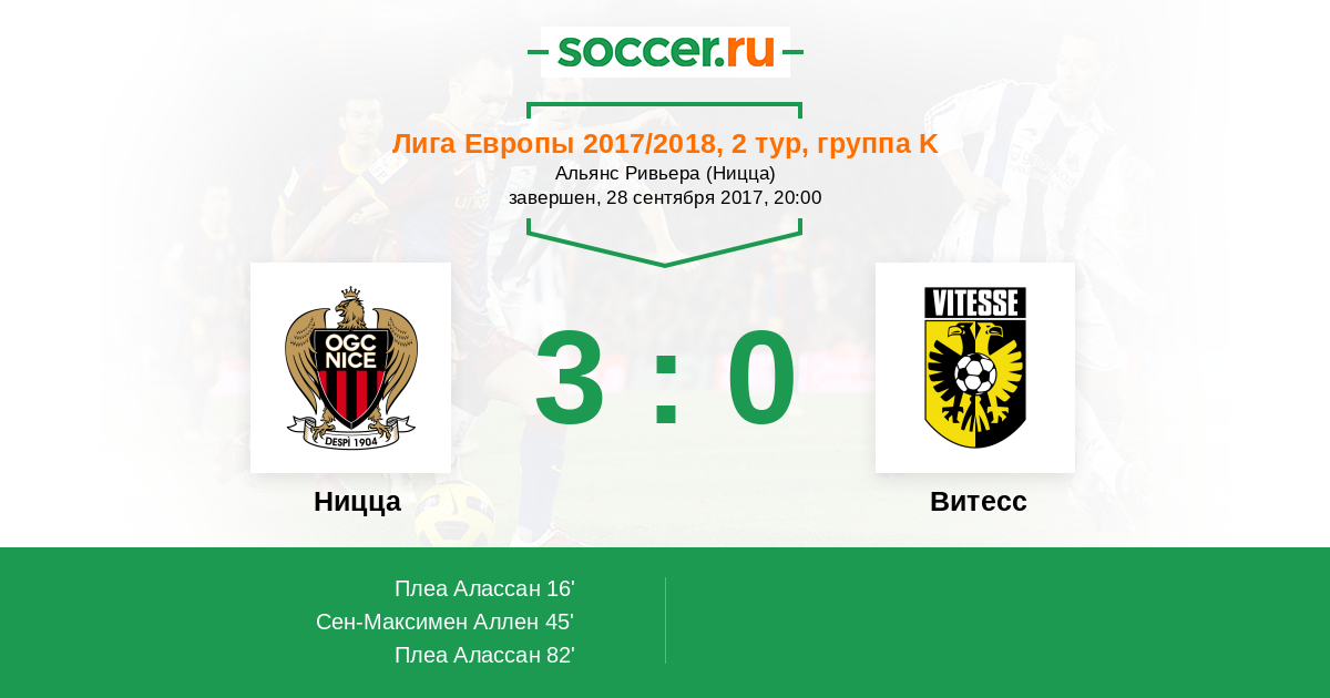 Алессан Плеа (Ницца) получает точную передачу в штрафной, которую отдал Bassem Srarfi, и реализует свой момент ударом в нижний угол ворот. Он делает счет 3:0!