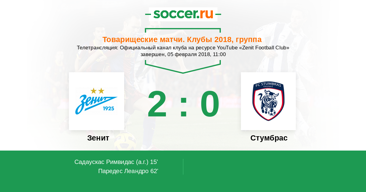 Текстовая онлайн трансляция матча Зенит против Стумбрас
