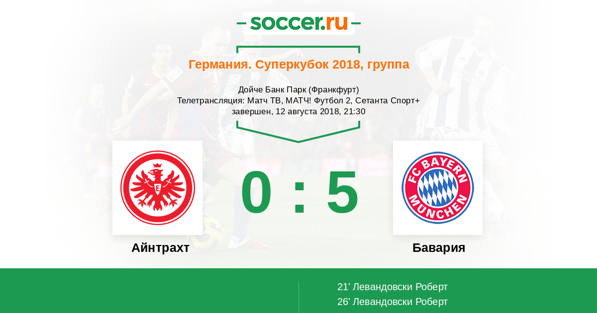 Приветствуем всех пользователей Soccer.Ru! Футбольный сезон в Германии стартует с матча за Суперкубок, в котором лицом к лицу сойдутся «Айнтрахт» и «Бавария». Нико Ковач против своей бывшей команды – нас ожидает крайне интересное противостояние. Встретимся на «Коммерцбанк Арене» в 21:30!