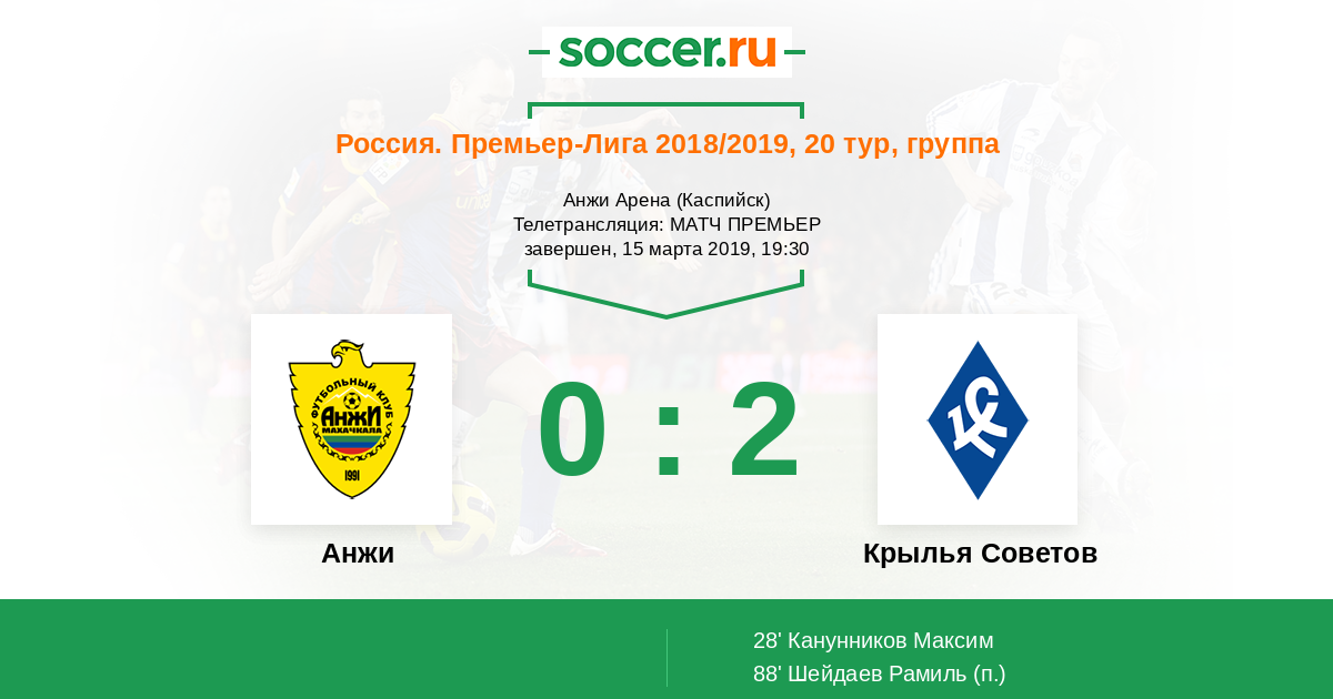 В предыдущем туре «Анжи» потерпел домашнее поражение от «Локомотива», пропустив по голу в каждом из таймов. А вот обновленные «Крылья Советов» уверенно разобрались с худшей командой чемпионата «Енисеем» - разгромная виктория со счётом 4:0.