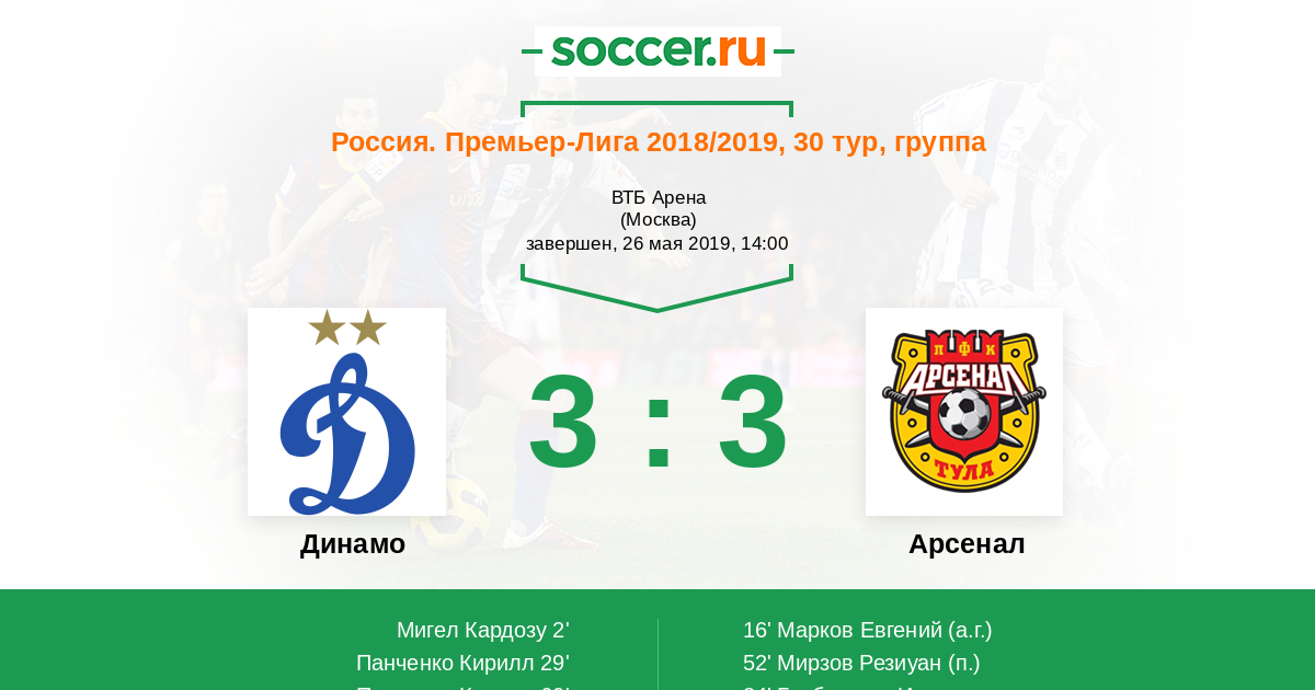 Ярким результативным матчем "Динамо" и "Арсенал" открыли ВТБ-Арену! И пусть в турнирном плане игра ничего не значила, команды сумели сделать встречу интересной для фанатов благодаря яркому футболу! Спасибо за внимание уважаемые любители футбола, продолжайте следить за футболом на "Соккер.ру"!