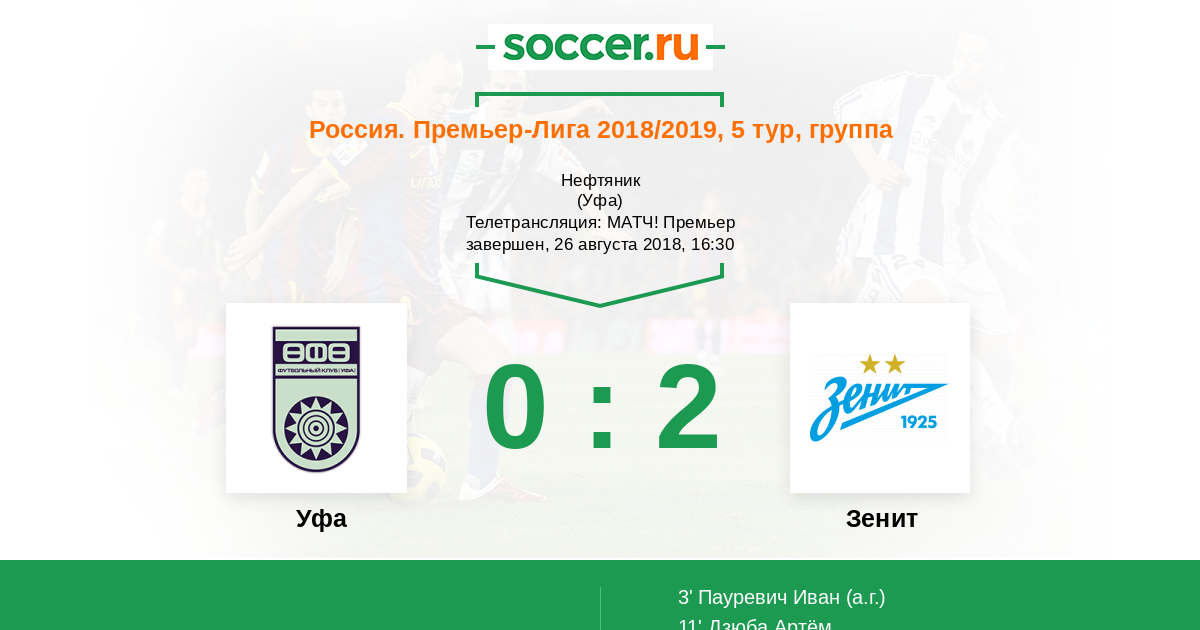 Приветствуем всех любителей российского футбола! Мы с вами отправляемся на стадион «Нефтяник», где в рамках 5-го тура РПЛ между собой сойдутся «Уфа» и «Зенит». Обслуживать данный матч будет Николай Волошин – рефери из Смоленска. Начинаем в 16:30!