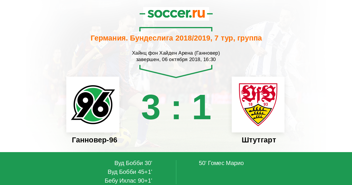Бобби Вуд (Ганновер-96) потерял мяч, хоть и оторвался от опеки. Мяч покинул пределы поля. Штутгарт введет мяч в игру ударом от ворот.